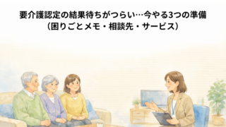 - 結果待ちで不安。今できる準備は? →要介護認定の結果待ちがつらい…今やる3つの準備(困りごとメモ・相談先・サービス)