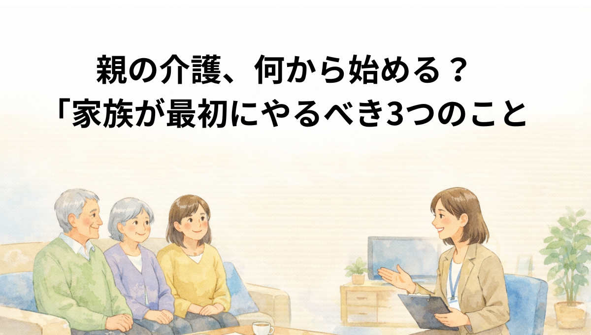 この記事では、初めて介護に向き合う家族が、焦らず進めるためのロードマップを 3ステップで紹介します。