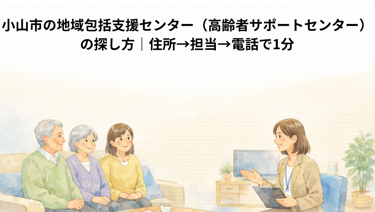 小山市では、地域包括支援センターは “高齢者サポートセンター” という名前で案内されています。市内に6か所あり、住所(地区)で担当が決まるので、手順どおりに見れば迷いません。