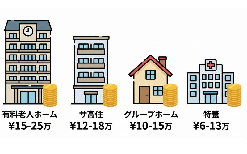 | サ高住 | 10万〜30万円 | 12万〜18万円 | 自由度が高い。重介護になると費用増の場合あり。 |