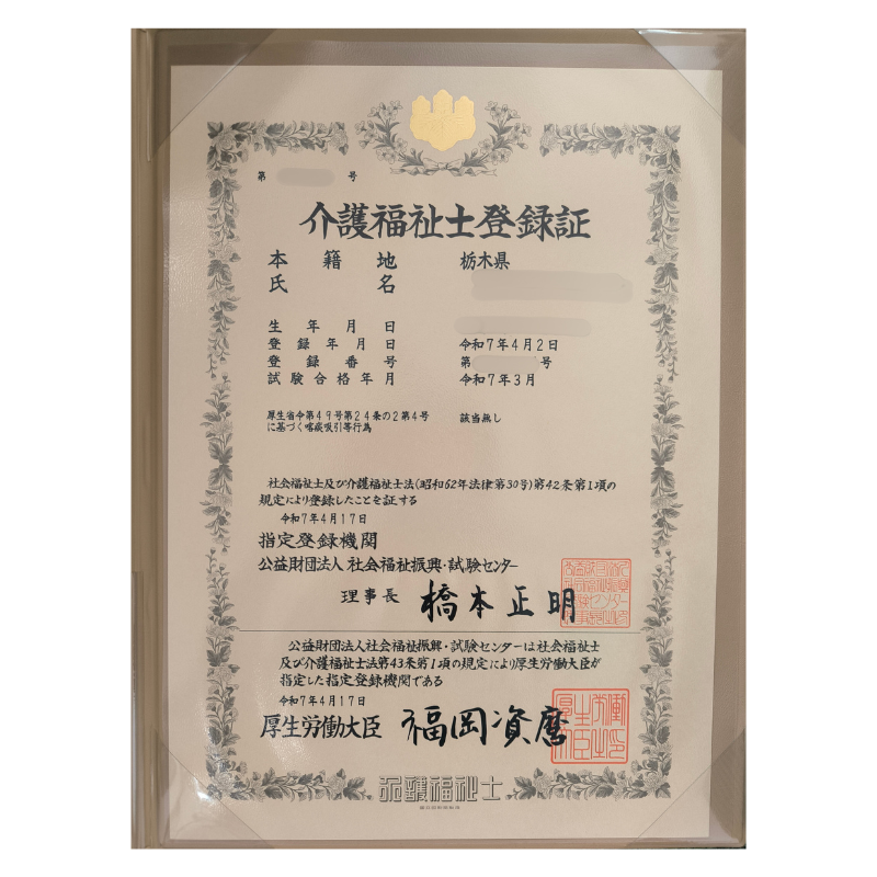 - 保有資格: 介護福祉士(2024年取得)